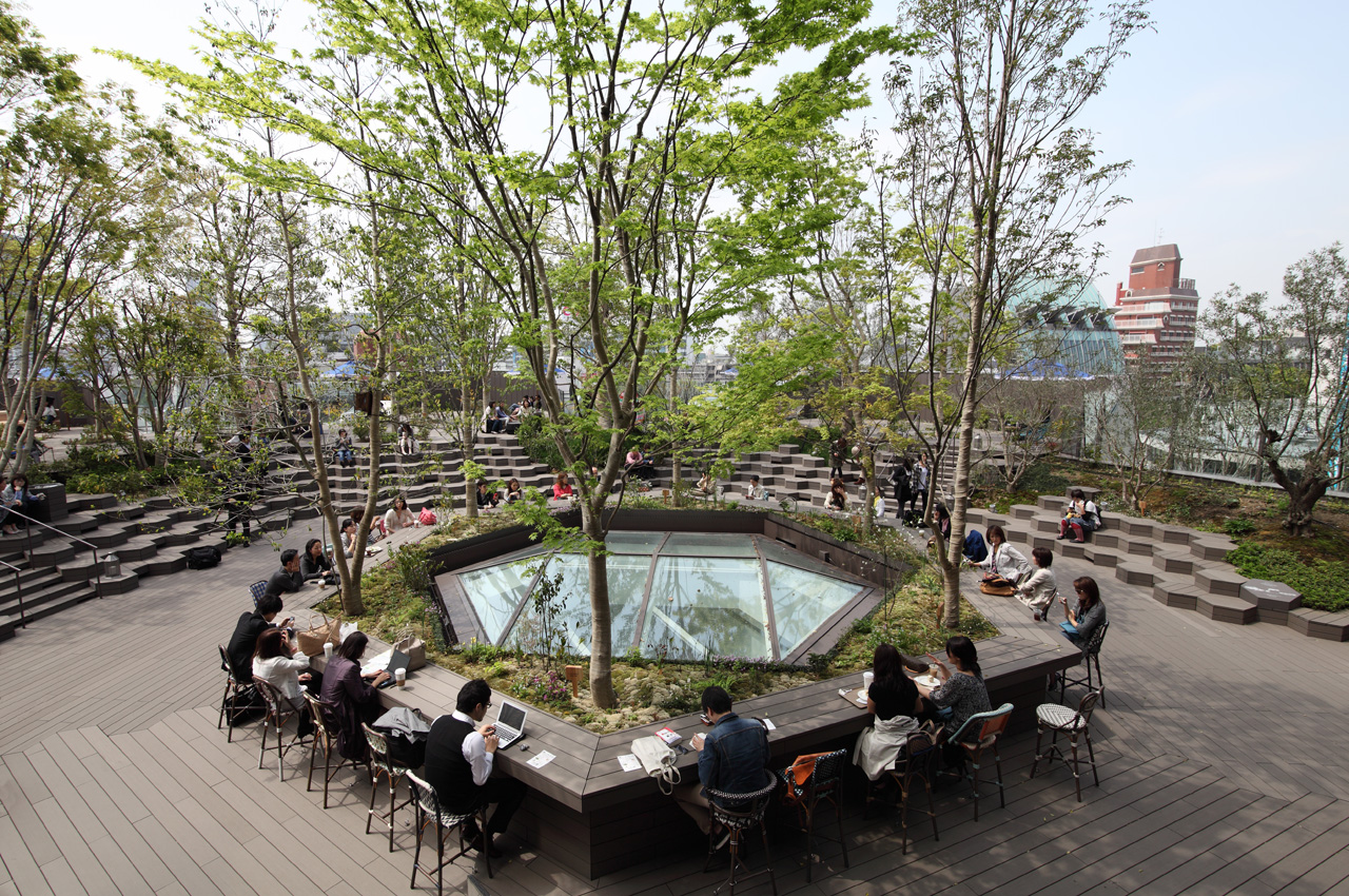 例えば僕がてがけた東急プラザ表参道原宿の屋上は、すりばち構造を使って、それぞれ人が好き勝手なことをしているのに、つま先や視線はすりばち底部に向いて、みんなで輪になっているという、ふるまいの連鎖を作り出しました。視線が安定すると、隣の人に目線がいかなくなり、場に落ち着きが生まれる効果も狙いました。ここに行ってもらえるとわかりますが、独特の一体感を感じることができます。
